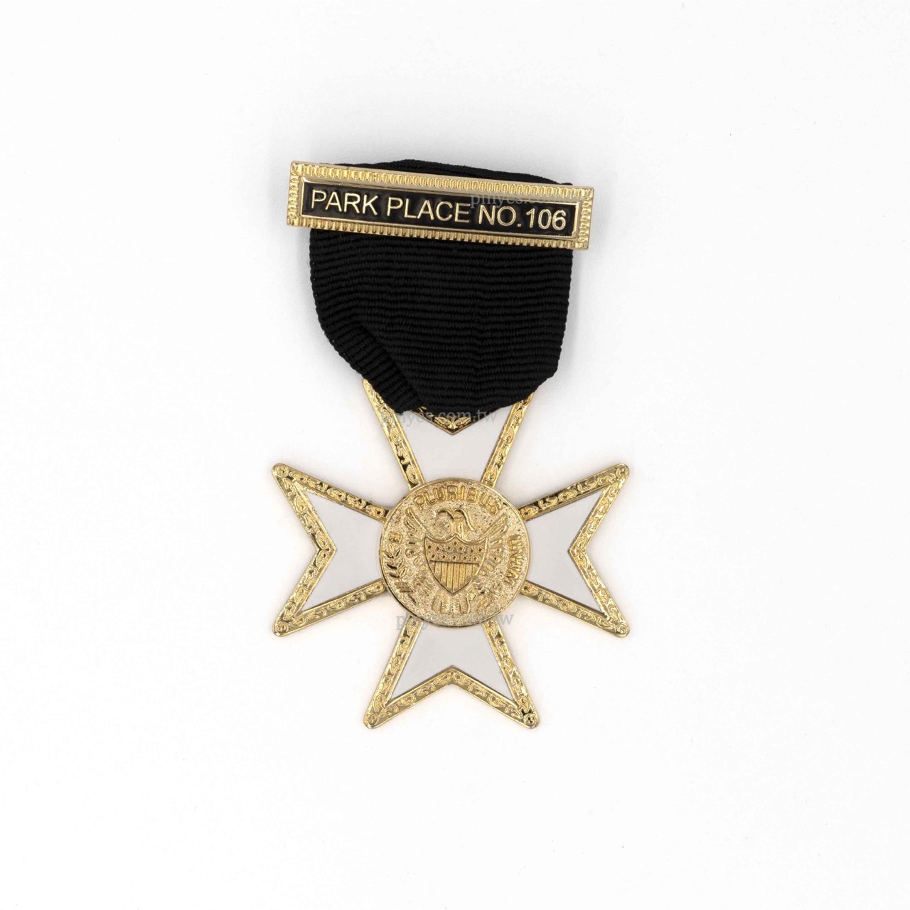 獎章採全鏤空十字造型設計,於金屬主體間保留通透空間,使中央徽章主體更加立體明顯。